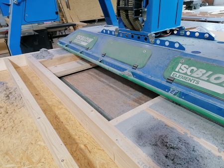 Ihr seht, wie unsere Wandelemente im Werk gefertigt und mit der Zellulose ausgeblasen werden und danach gesichert und verpackt bei euch auf die Baustelle geliefert und aufgestellt werden.